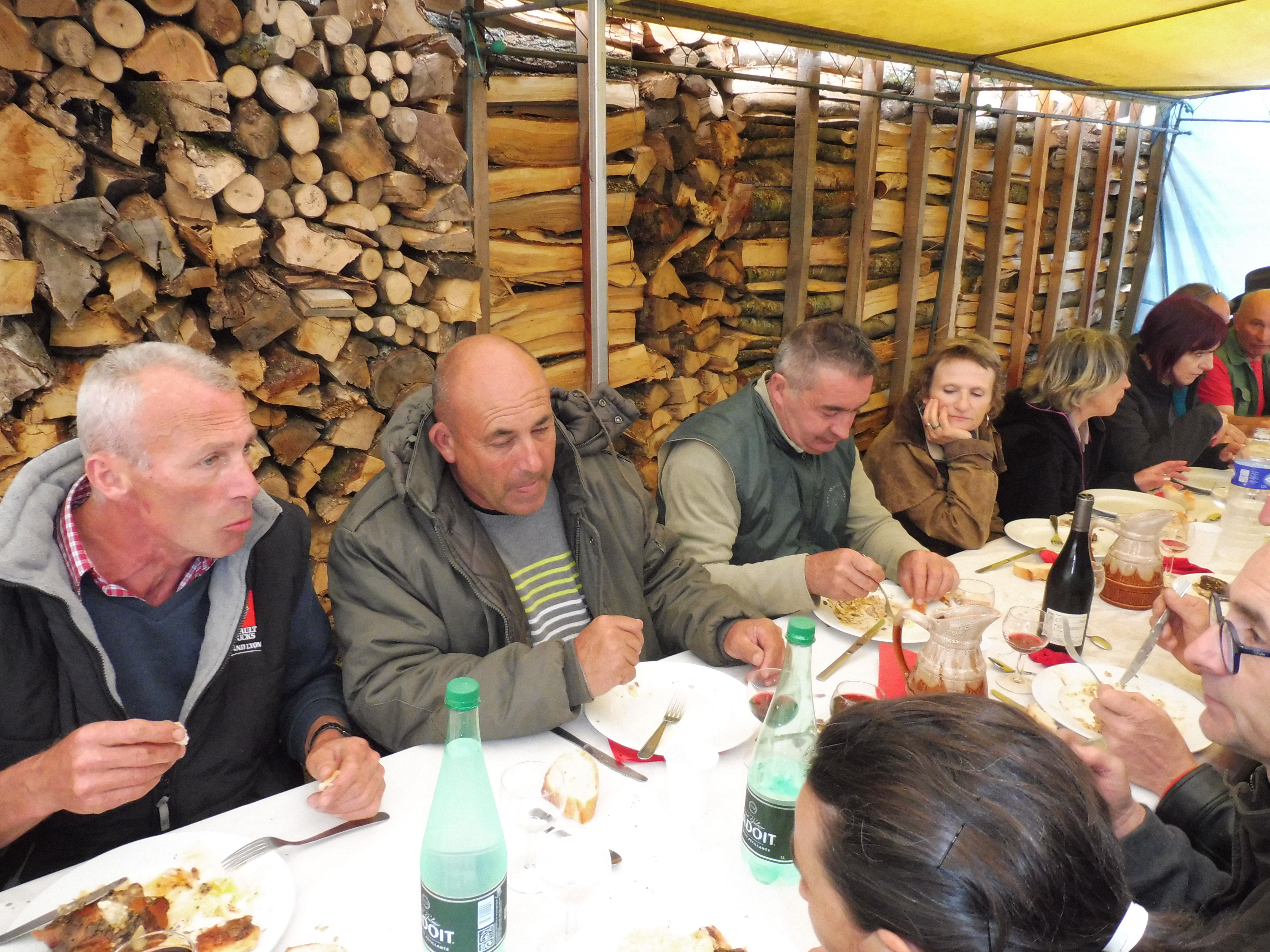 l’avance, le temps pour nous de saliver… Un délicieux cochon à la broche nous attendait au retour d’une belle balade. Le ciel nous a laissé le temps de rentrer et de s’abriter sous les tentes avant de nous arroser copieusement tout l’après midi. Nous étions nombreux au rendez-vous et ne nous sommes pas prêt d’oublier cette journée !!